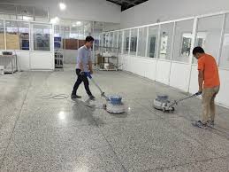 Bước 1: Chuẩn bị : nhân sự, máy móc,thiết bị ( máy mài tạ từ 90-150 kg, máy đánh bóng sàn tốc độ cao, máy hút bụi, máy hút nước, máy mài cầm tay v..v.)